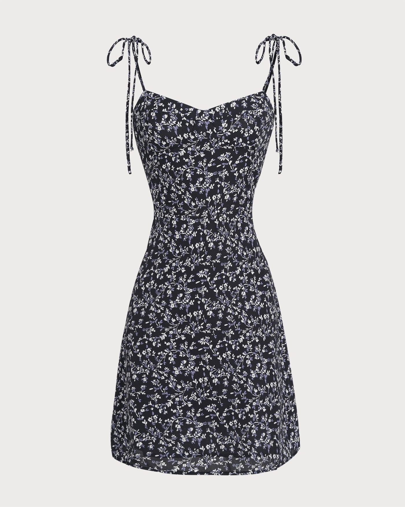 Blue Floral Tie Strap Mini Dress