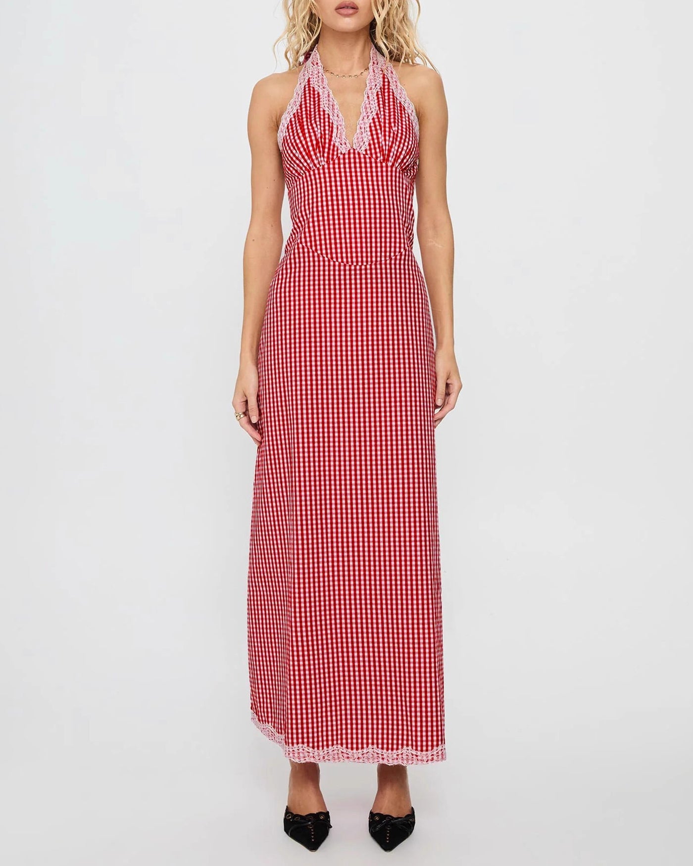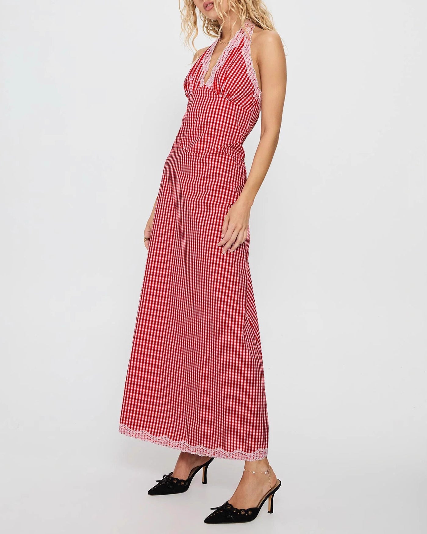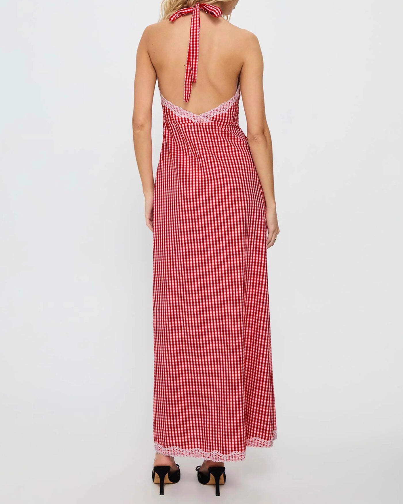 Red Plaid Halter Maxi Dress
