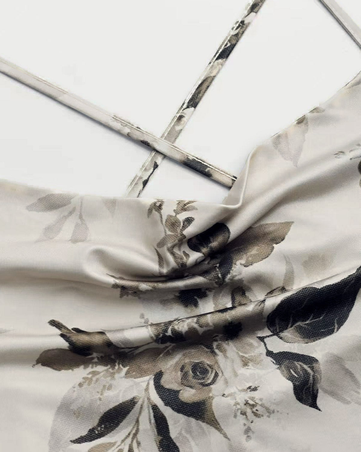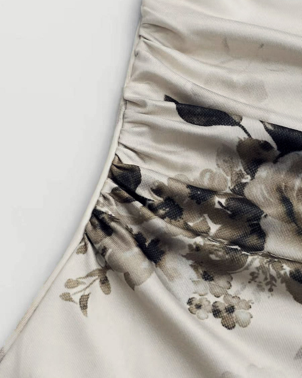 Aprikosenfarbenes Maxikleid mit Blumenmuster