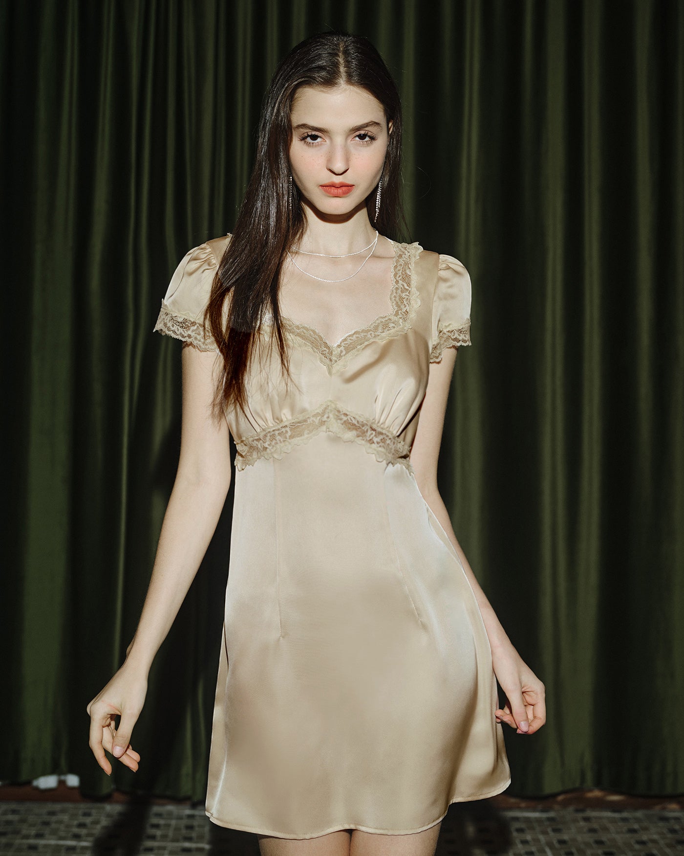 Apricot Square Neck Lace Mini Dress