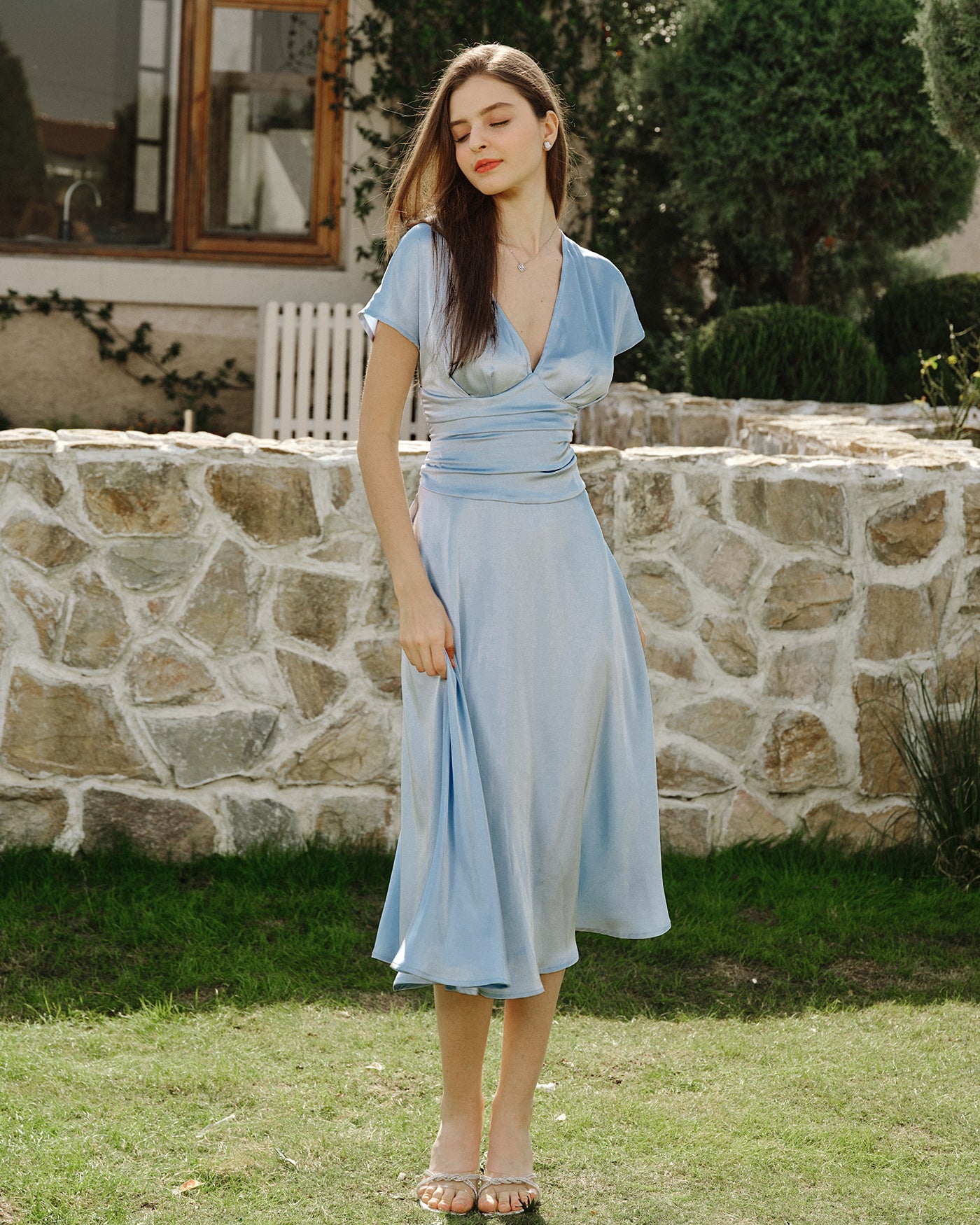 - Neckline: Plunging