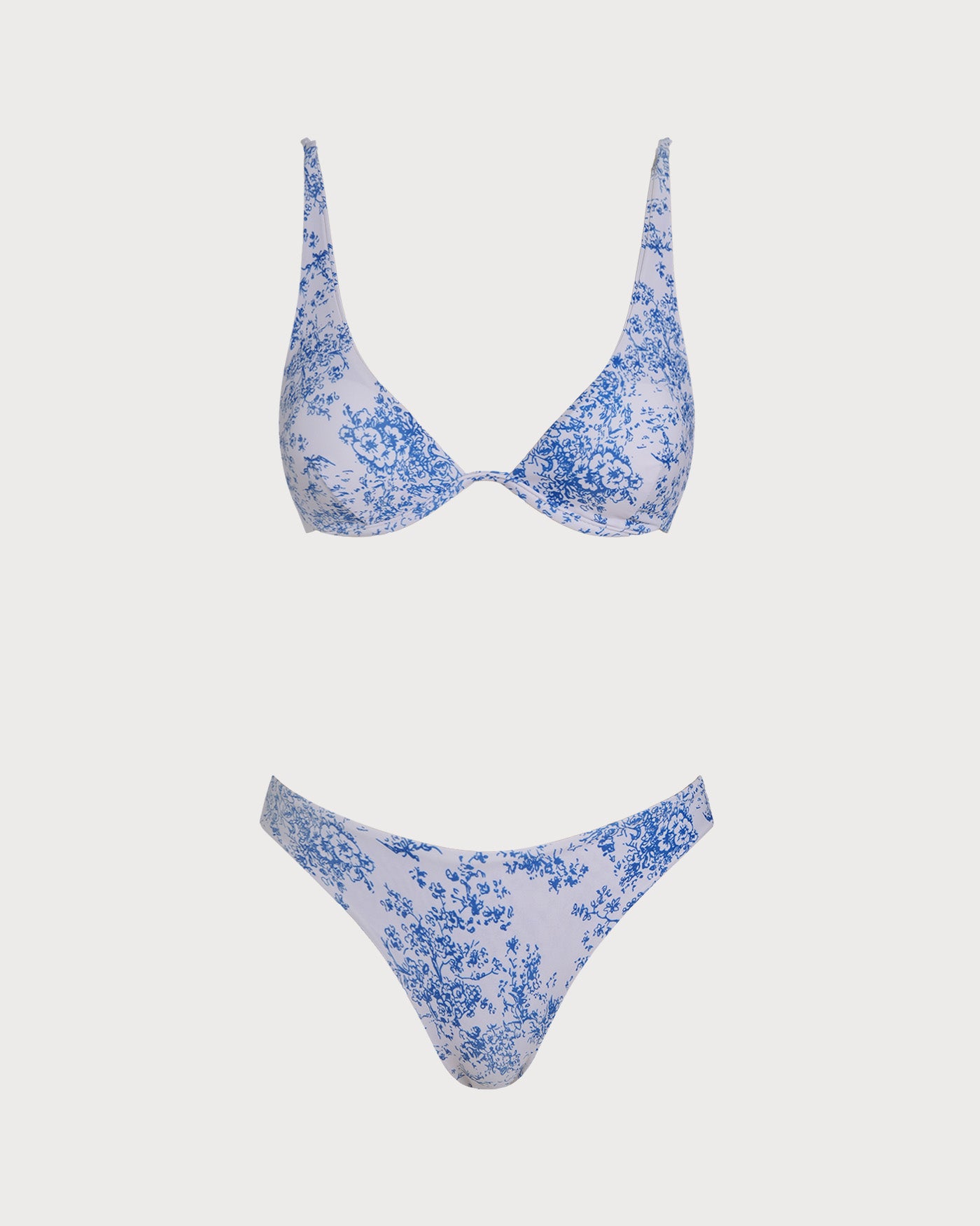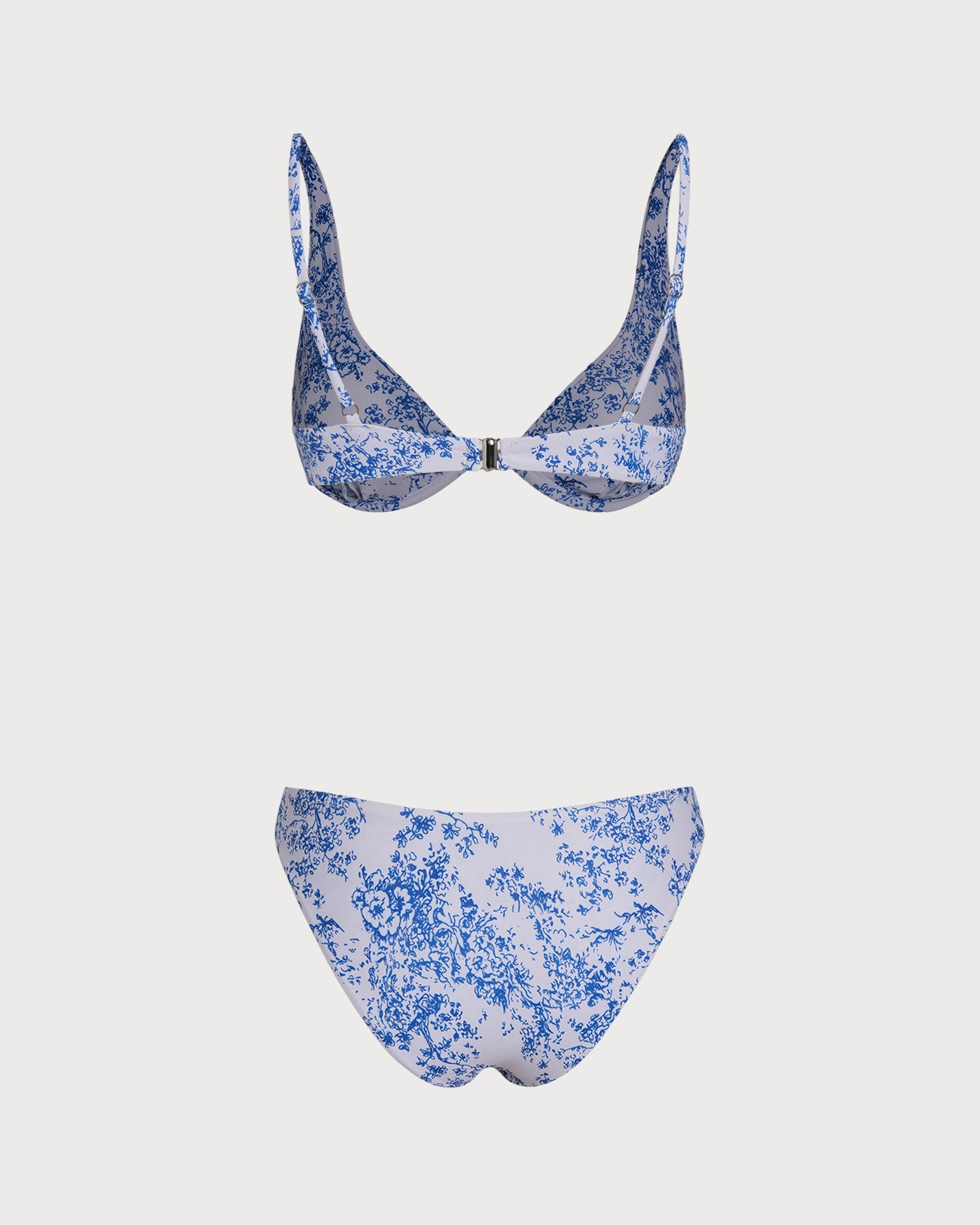 Blaues Bügel-Bikini-Set mit Blumenmuster