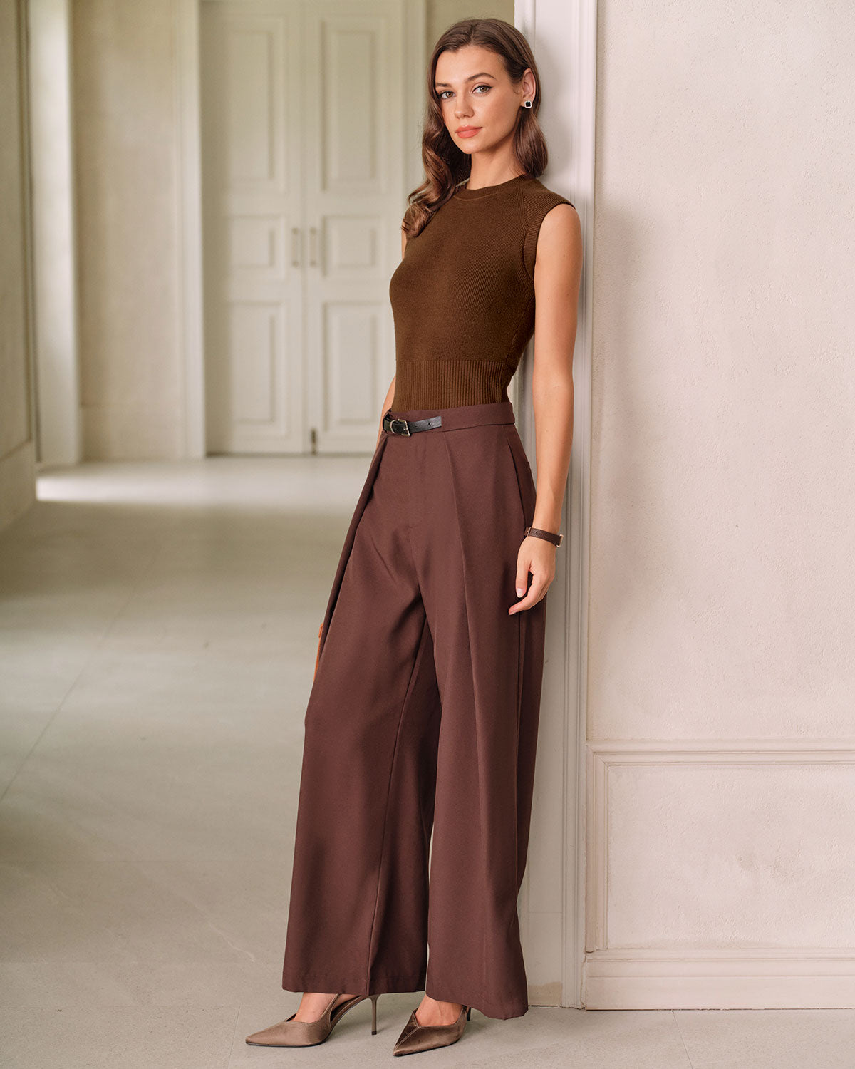 Braunes Stricktop mit Rundhalsausschnitt