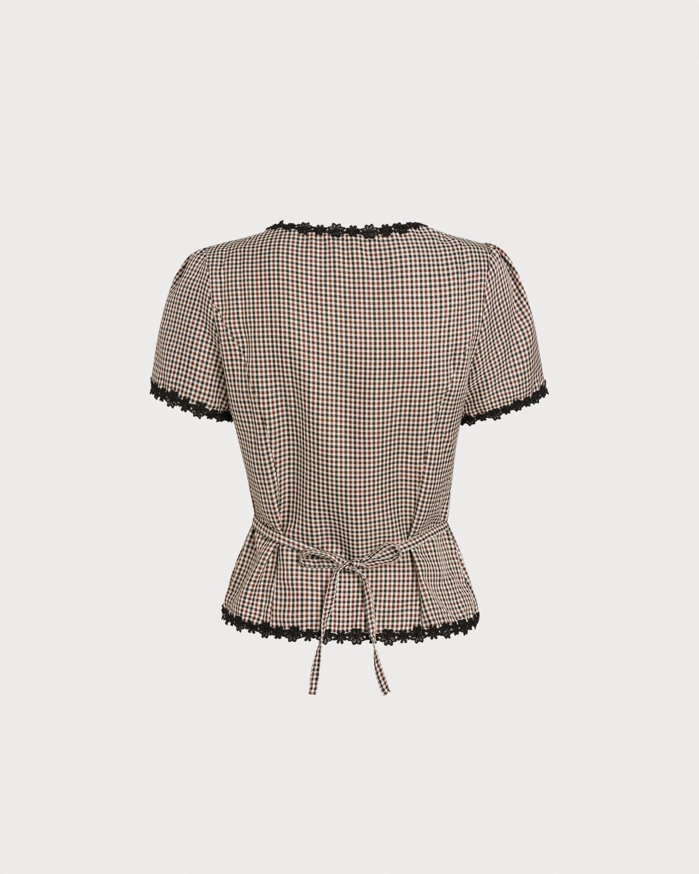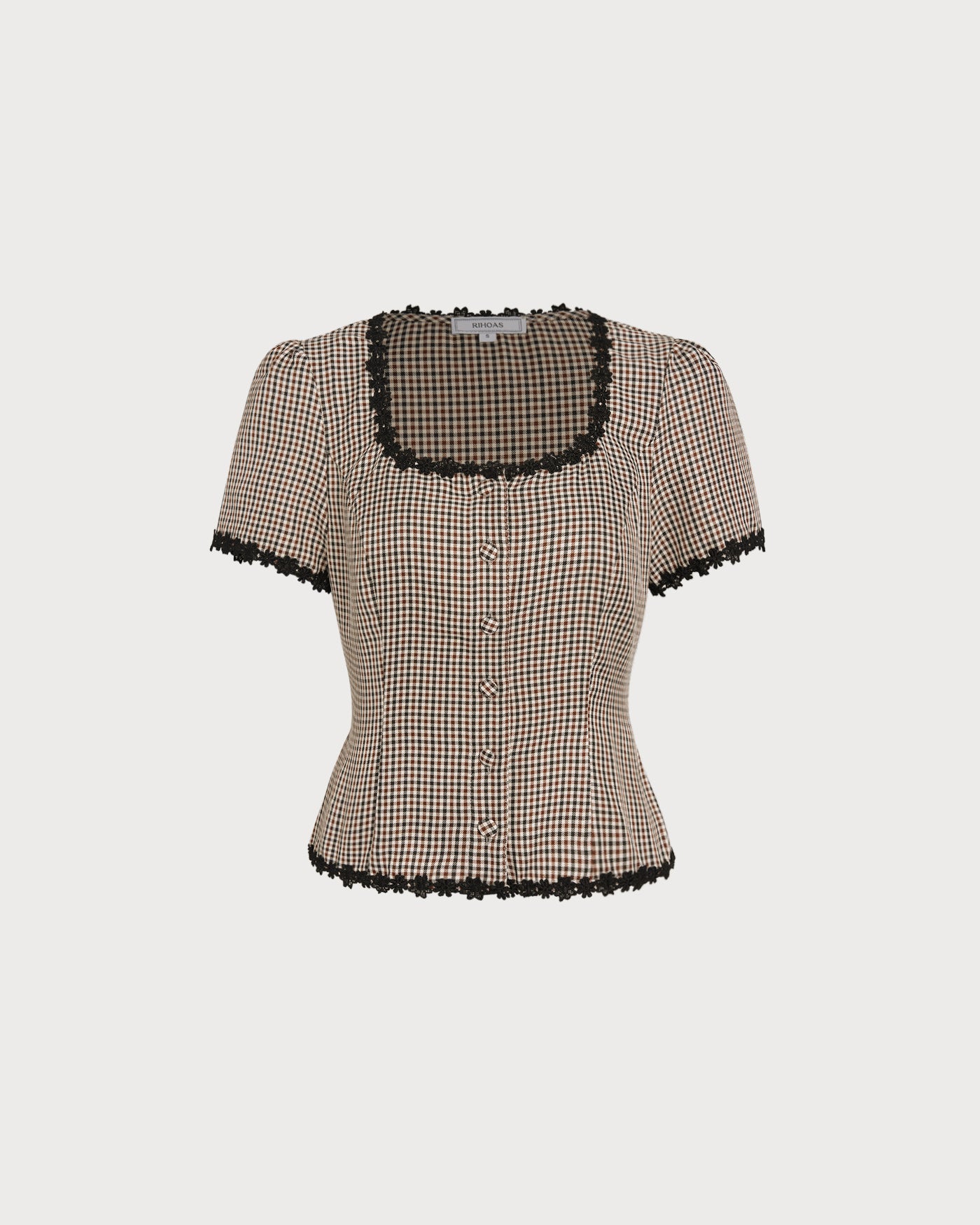Coffee Square Neck Plaid Blouse