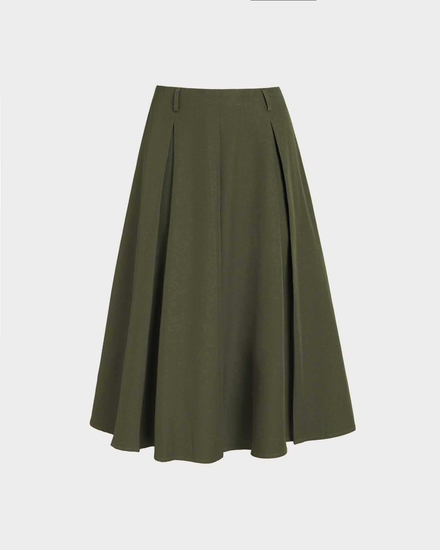 Grüner A-Linien-Faltenrock in Midi-Länge