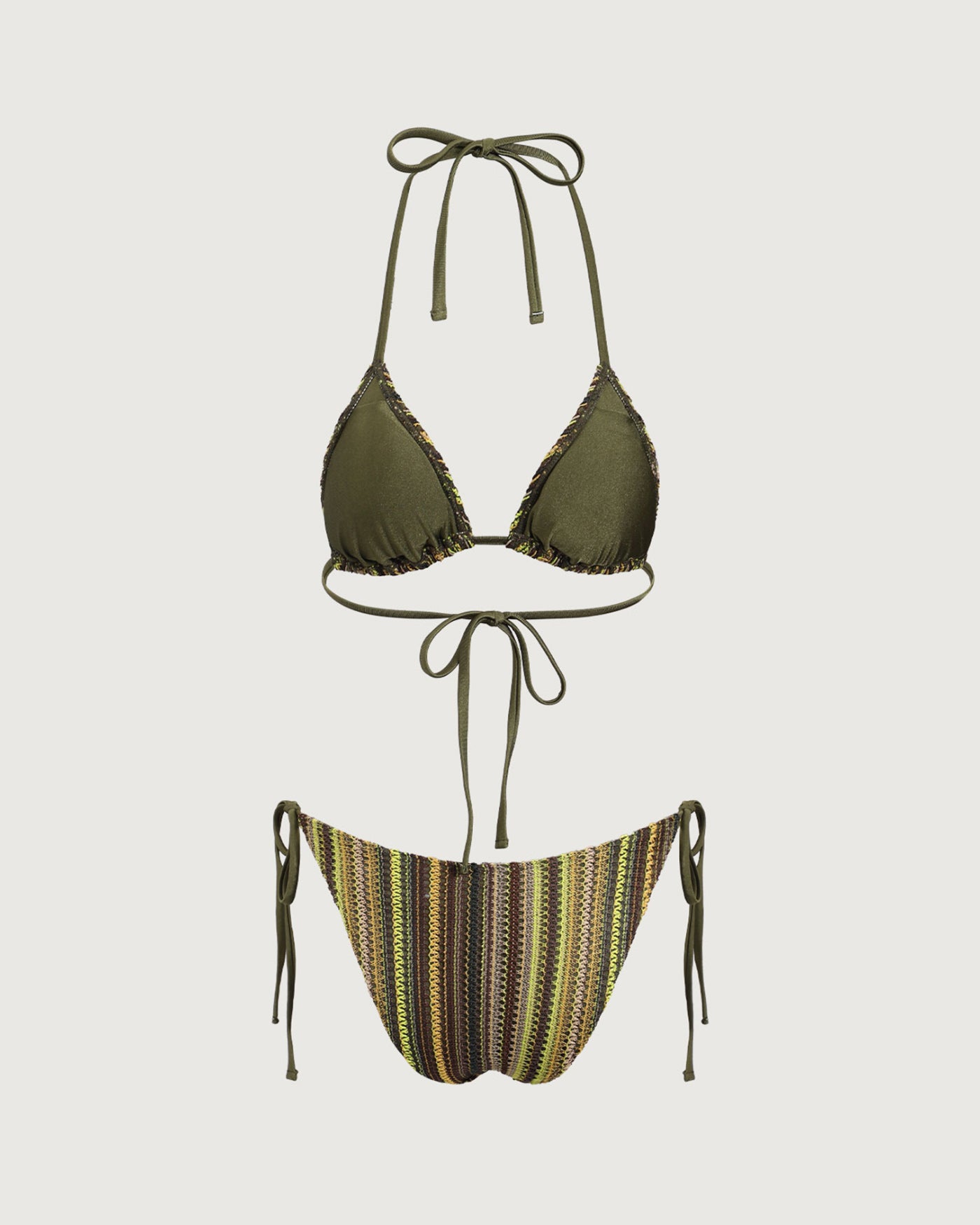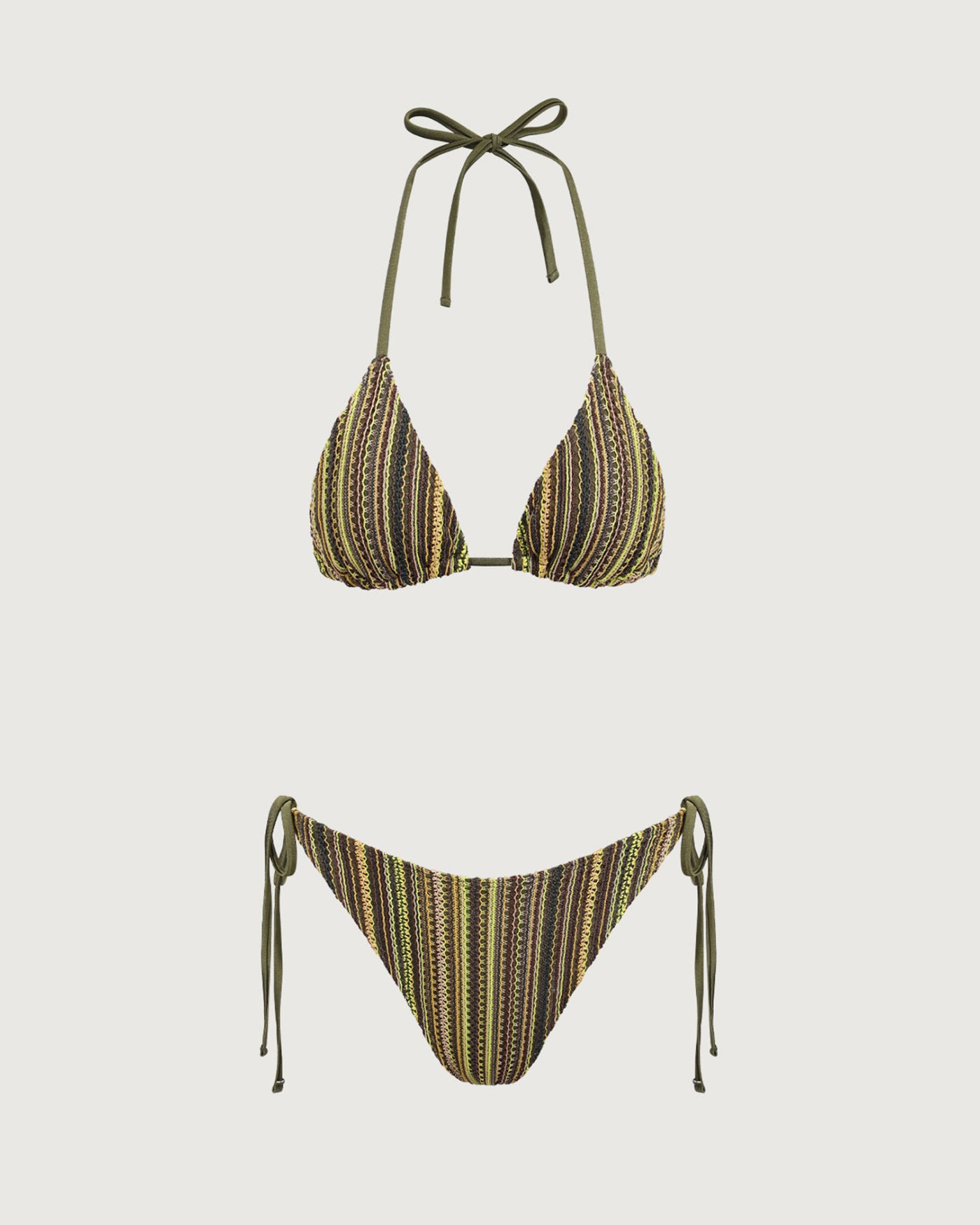 Green Striped Mesh Bikini Set