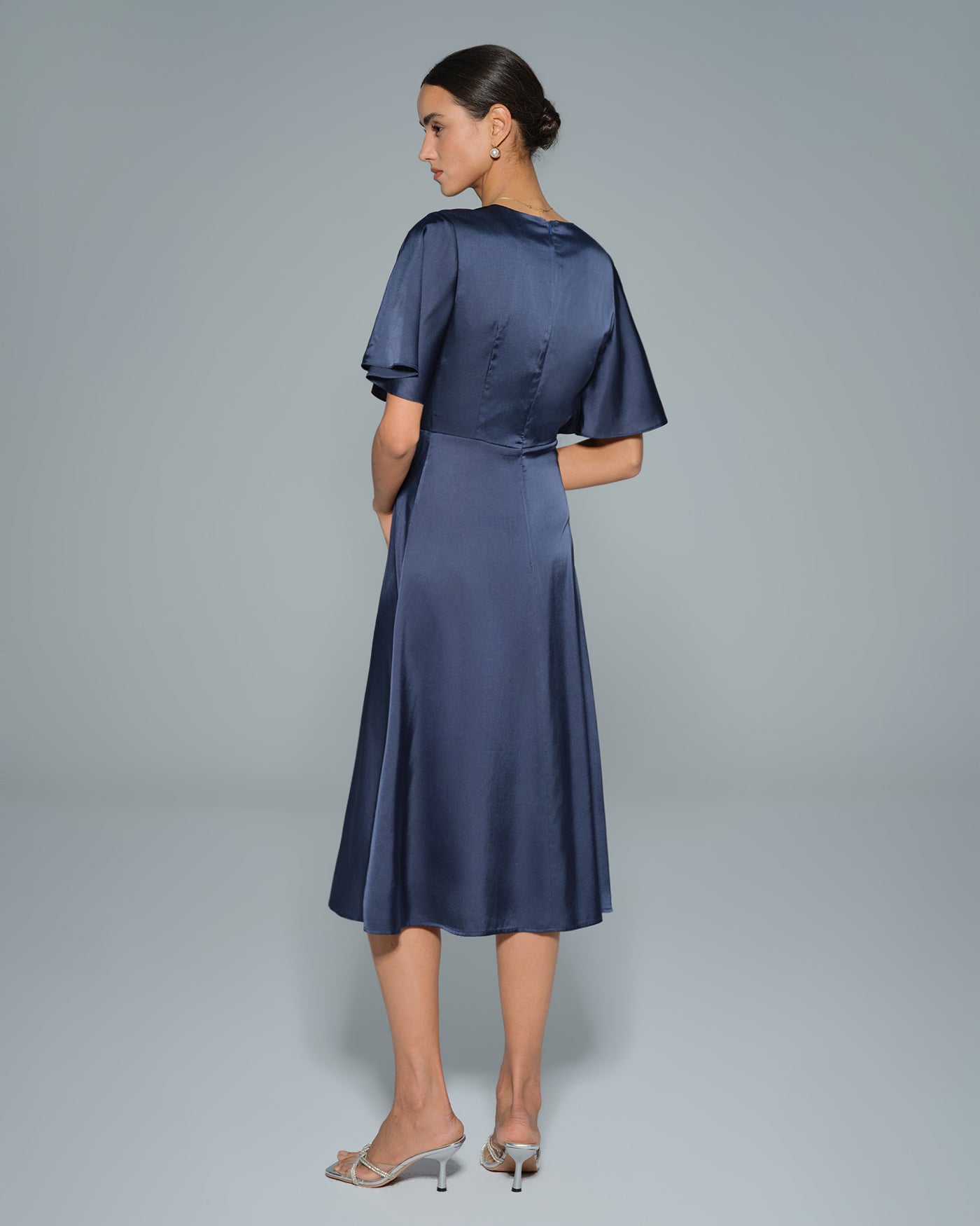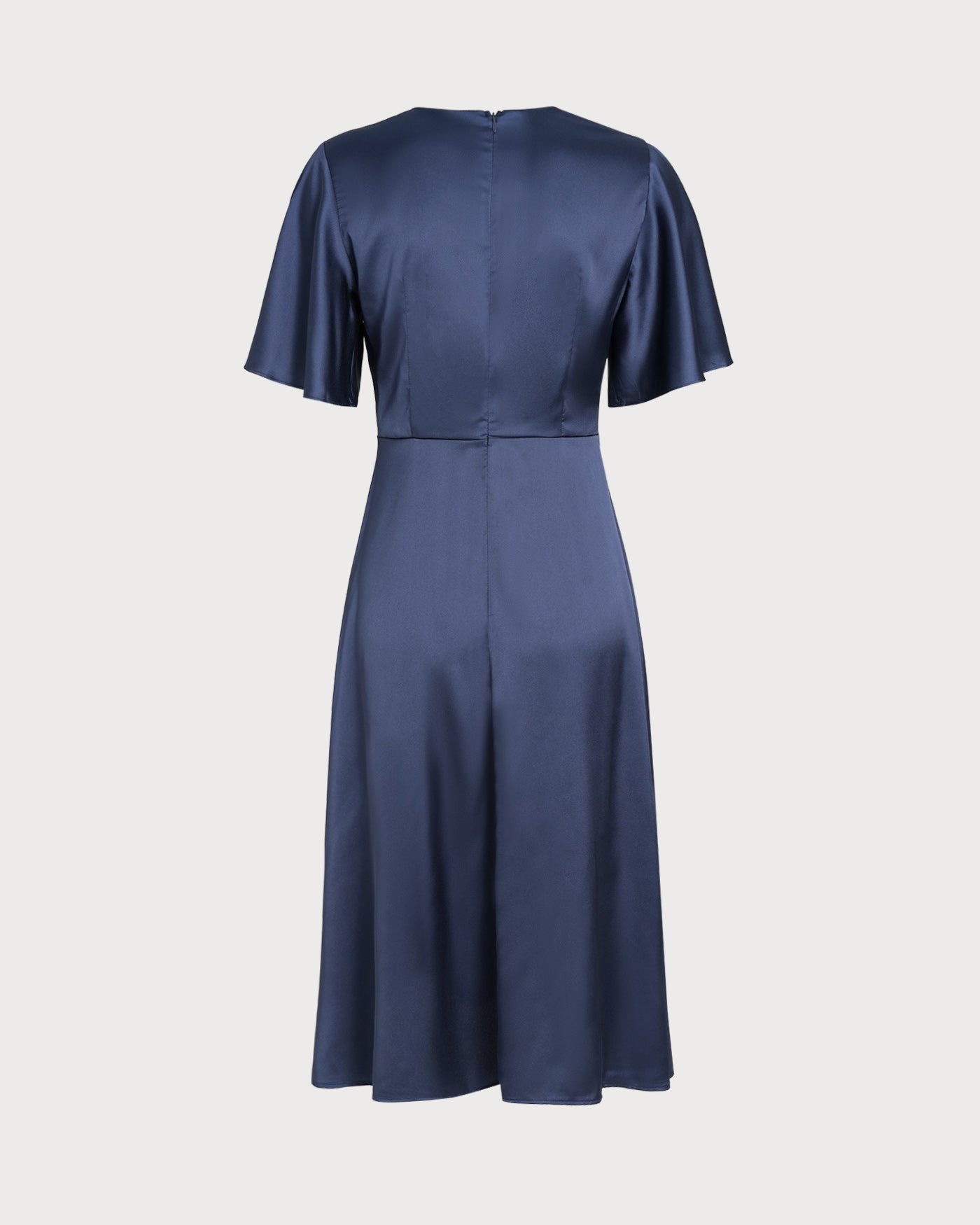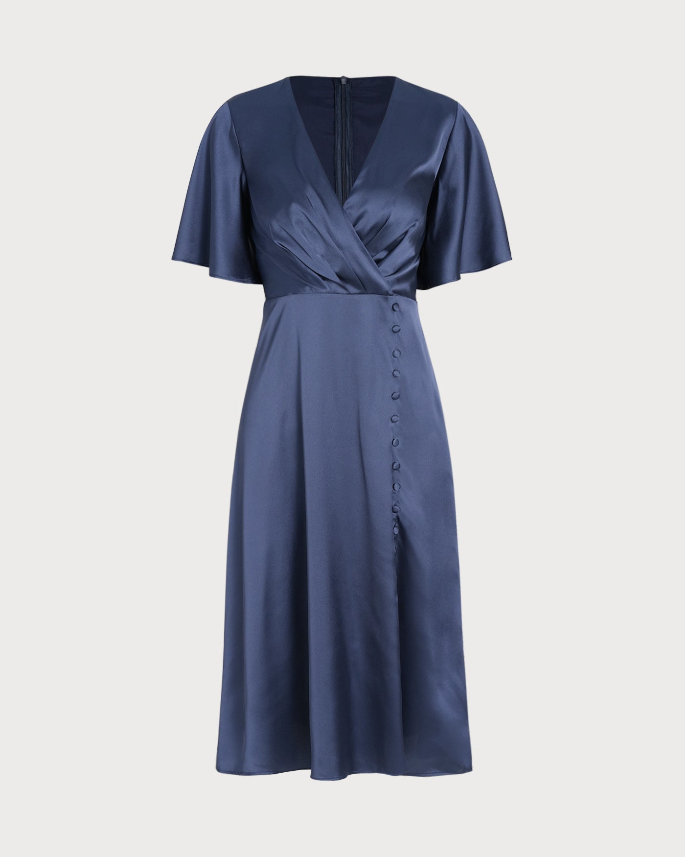 Navy V Neck Satin Midi Dress