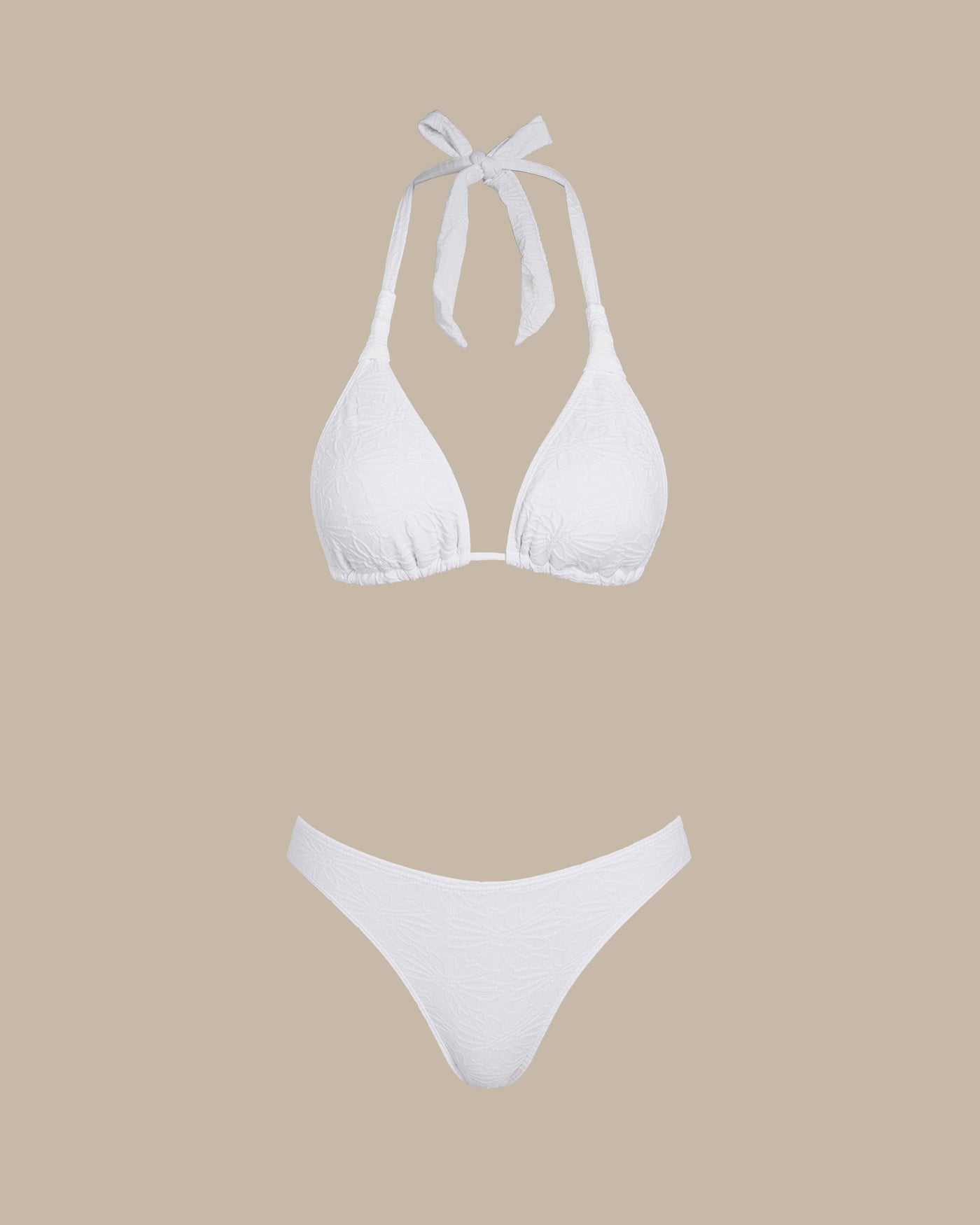 Weißes, strukturiertes Neckholder-Triangel-Bikini-Set