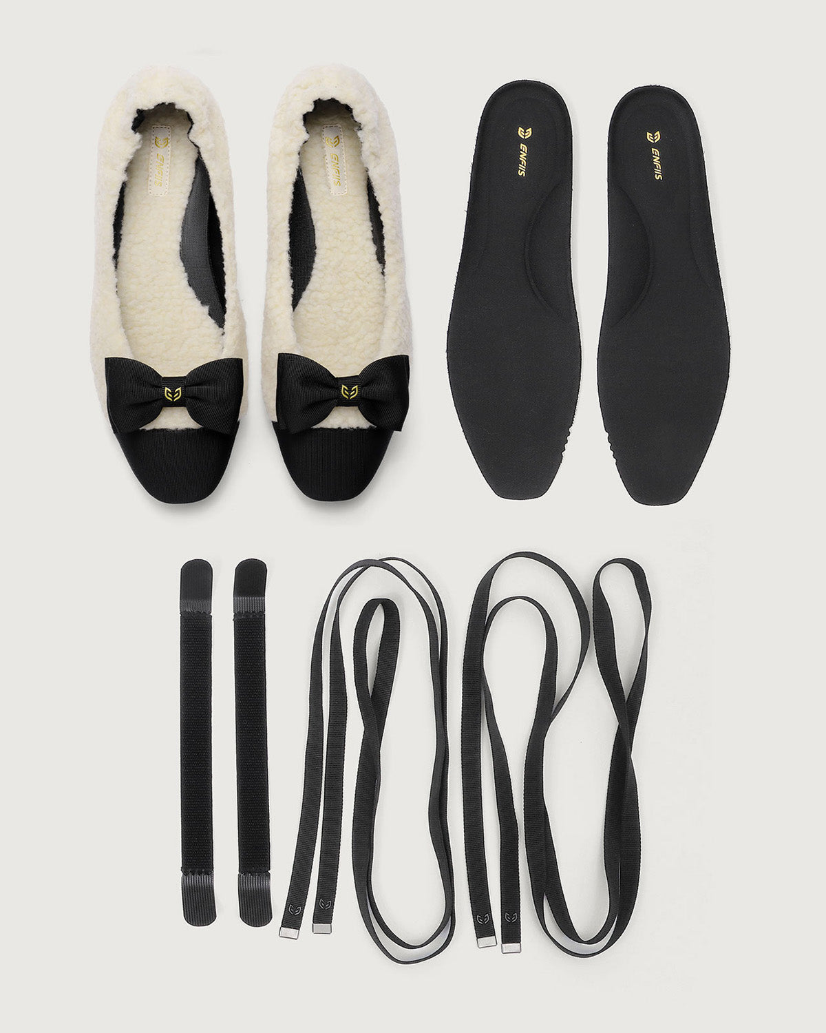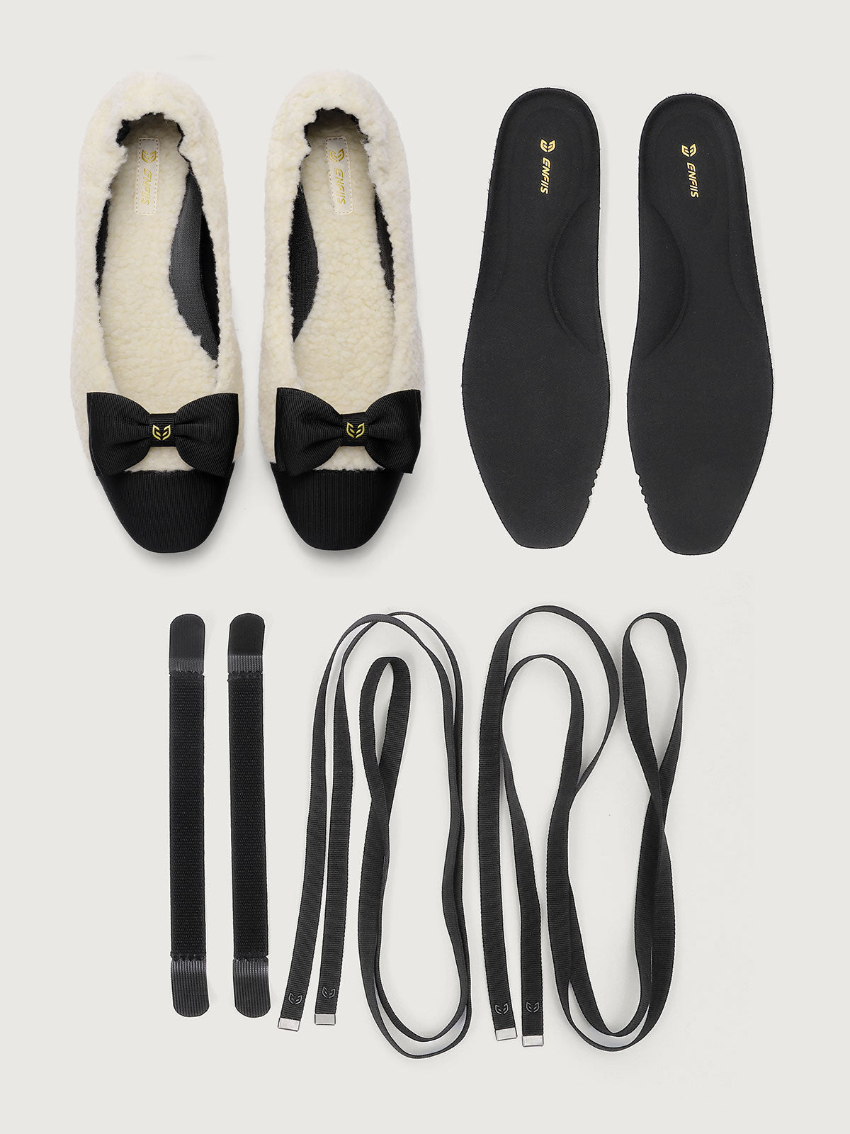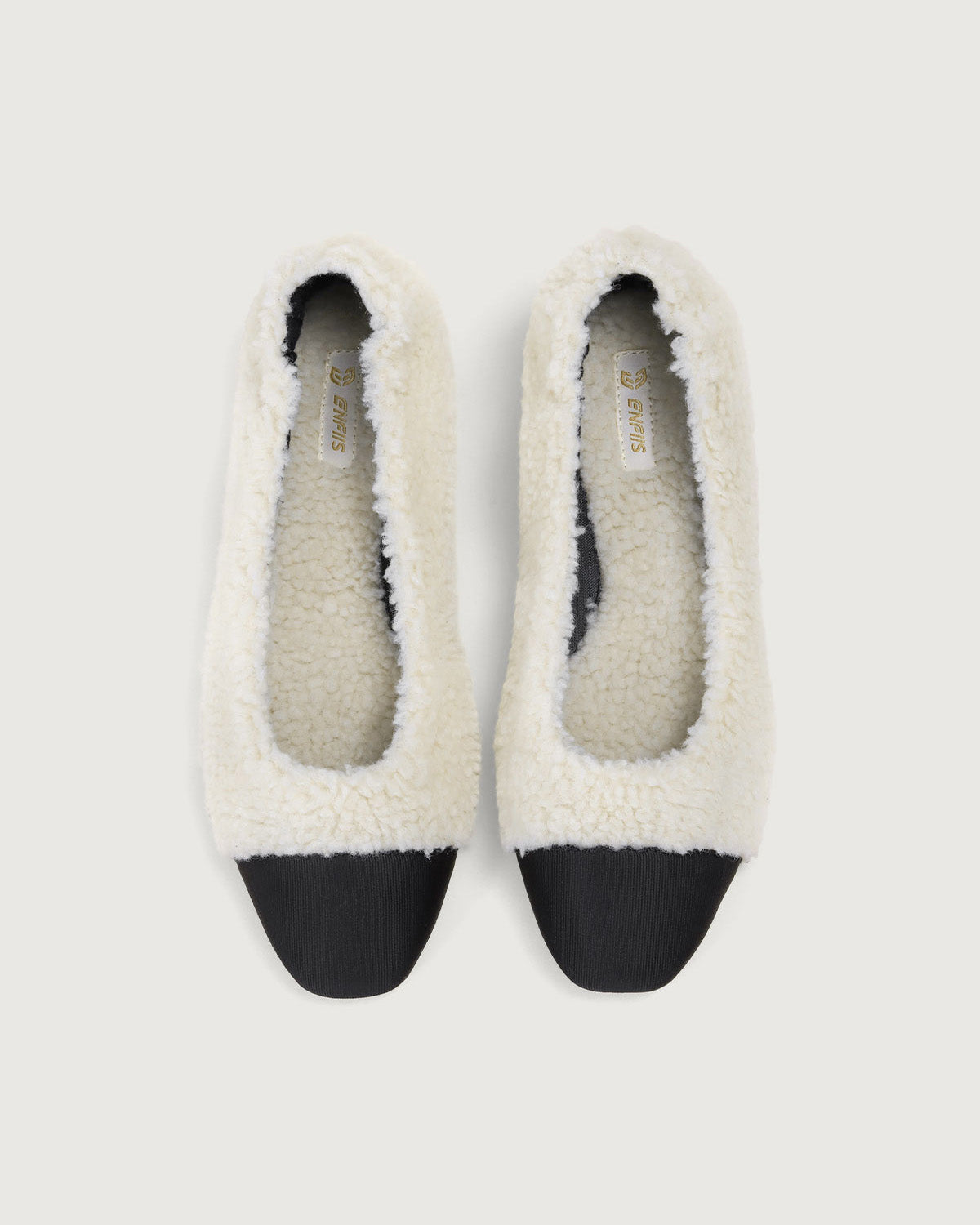 Enfiis Beige Fleece Square Toe Ballerinas