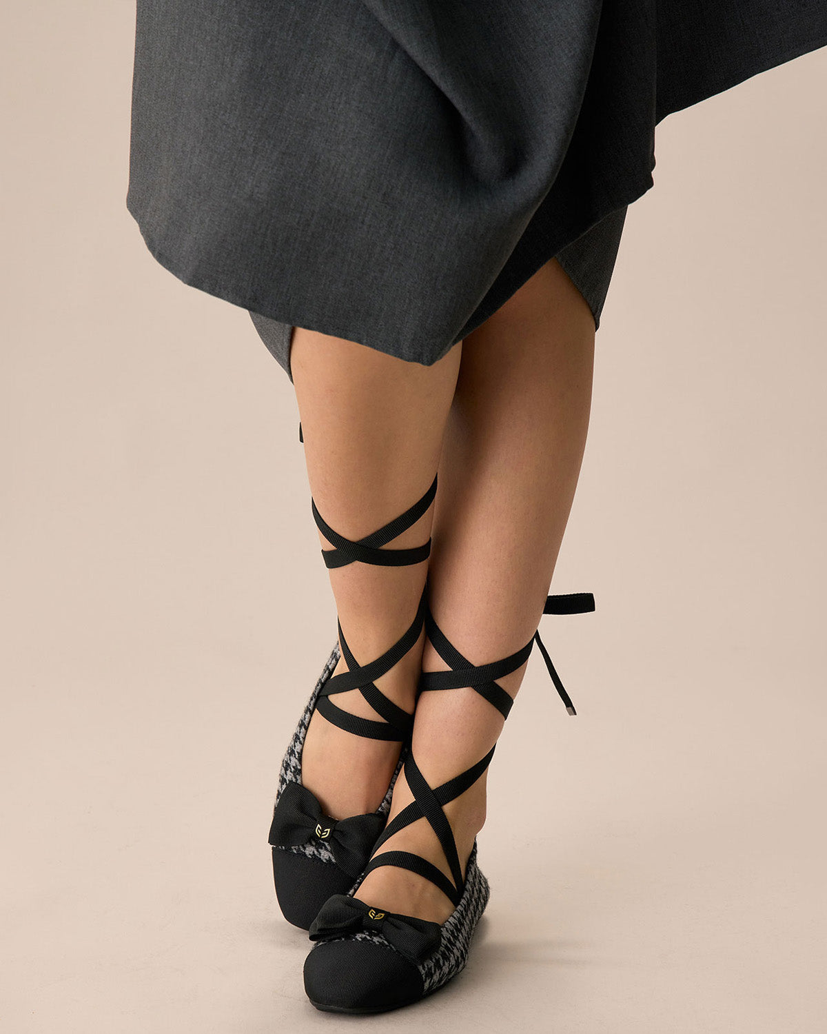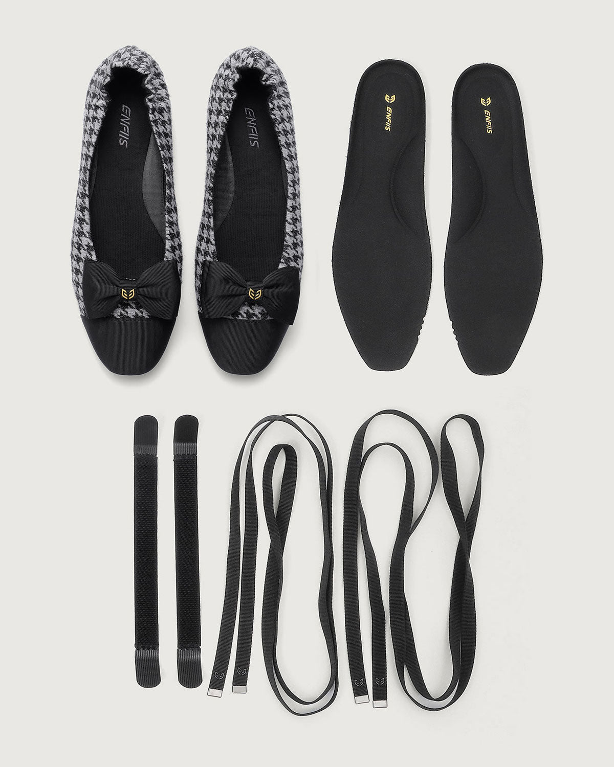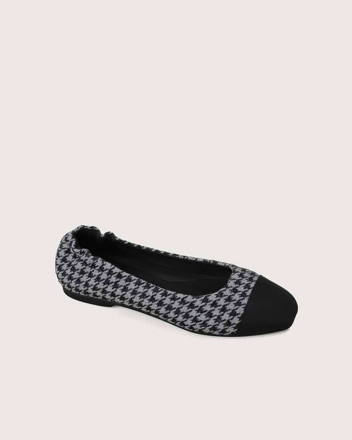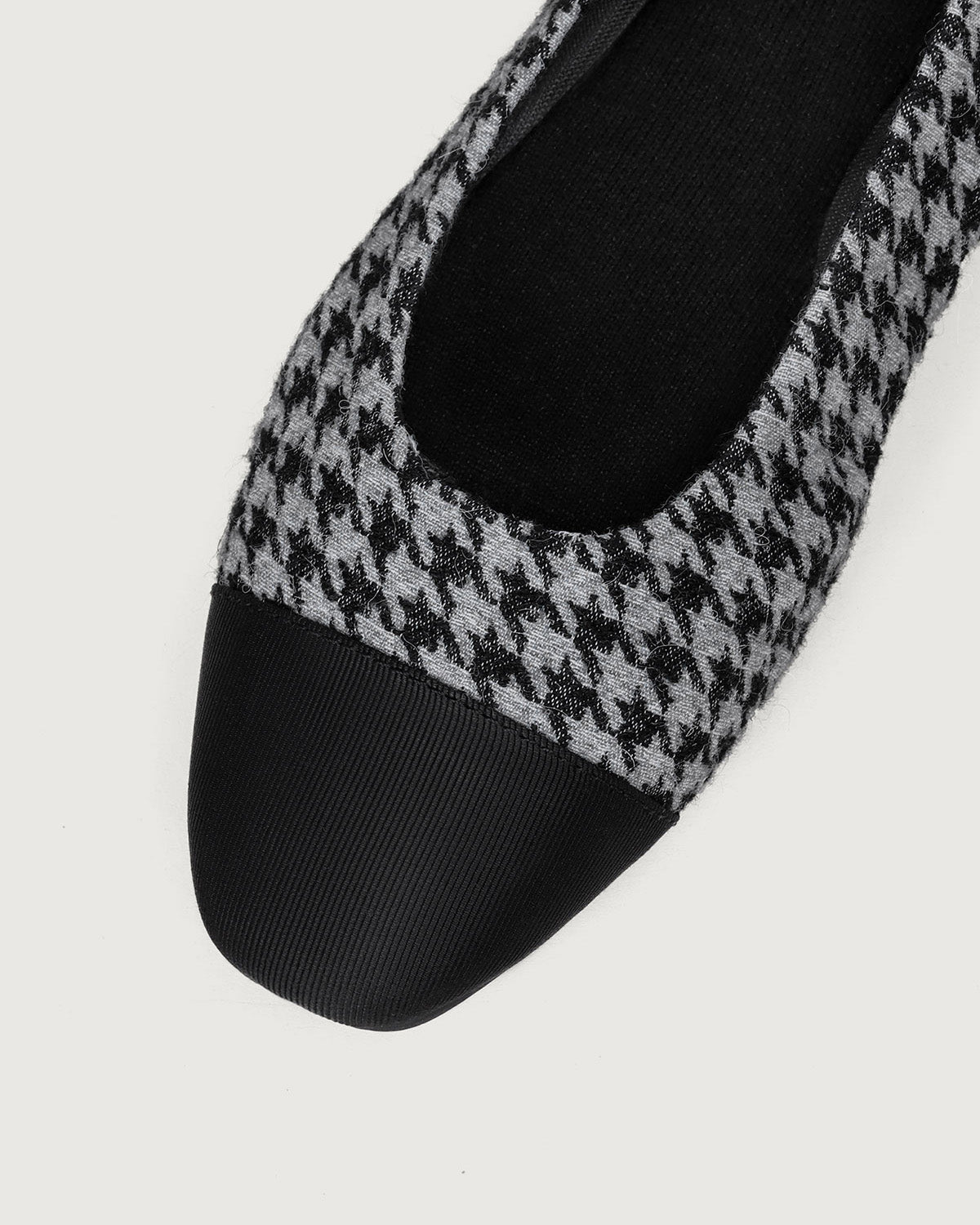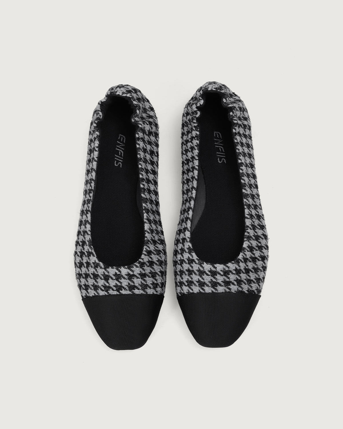 Enfiis Black and Grey Houndstooth Jacquard Square Toe Ballet Flats