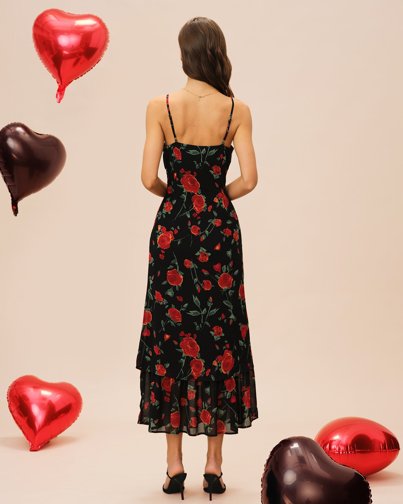 Black Floral Slip Chiffon Maxi Dress