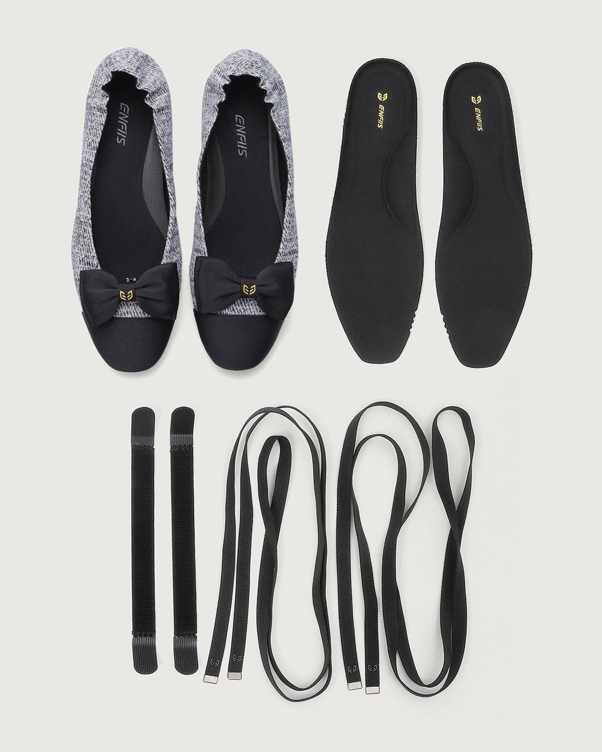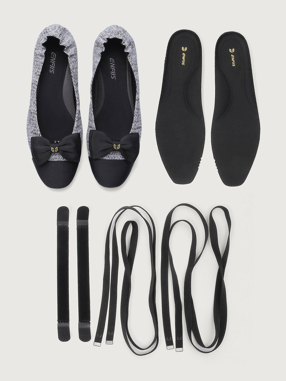Enfiis Black Twill Jacquard Ballet Flats