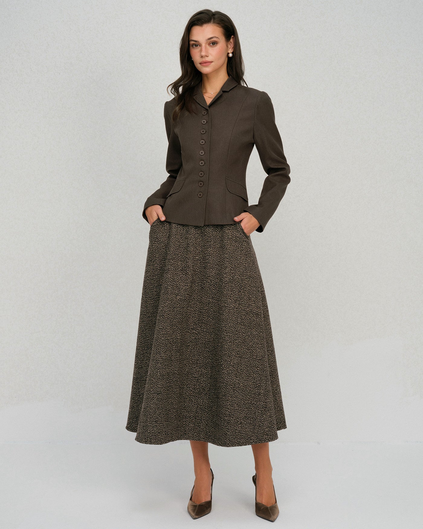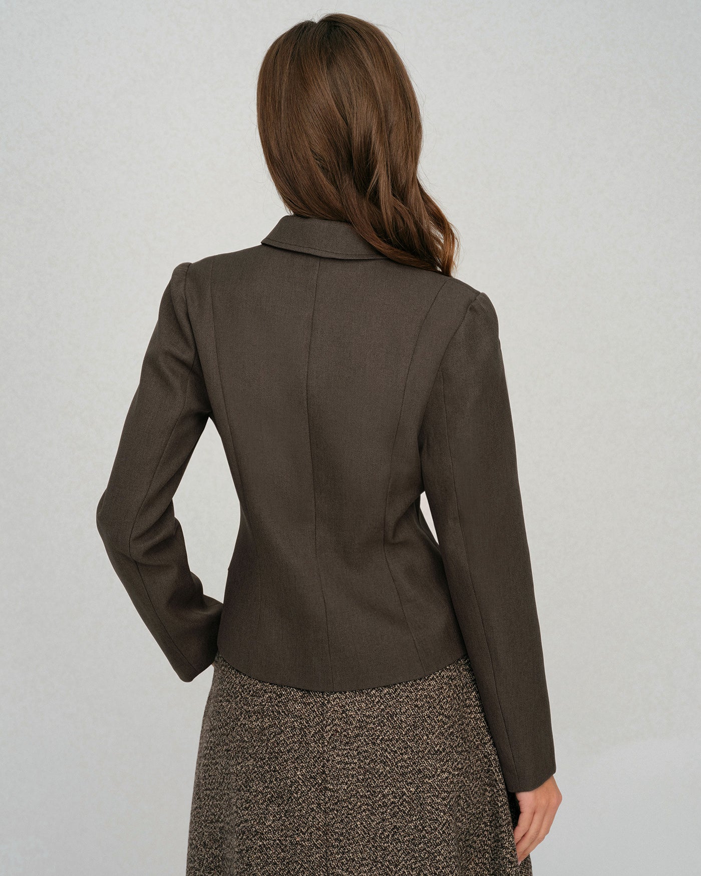 Coffee Single Breasted Solid Jacket