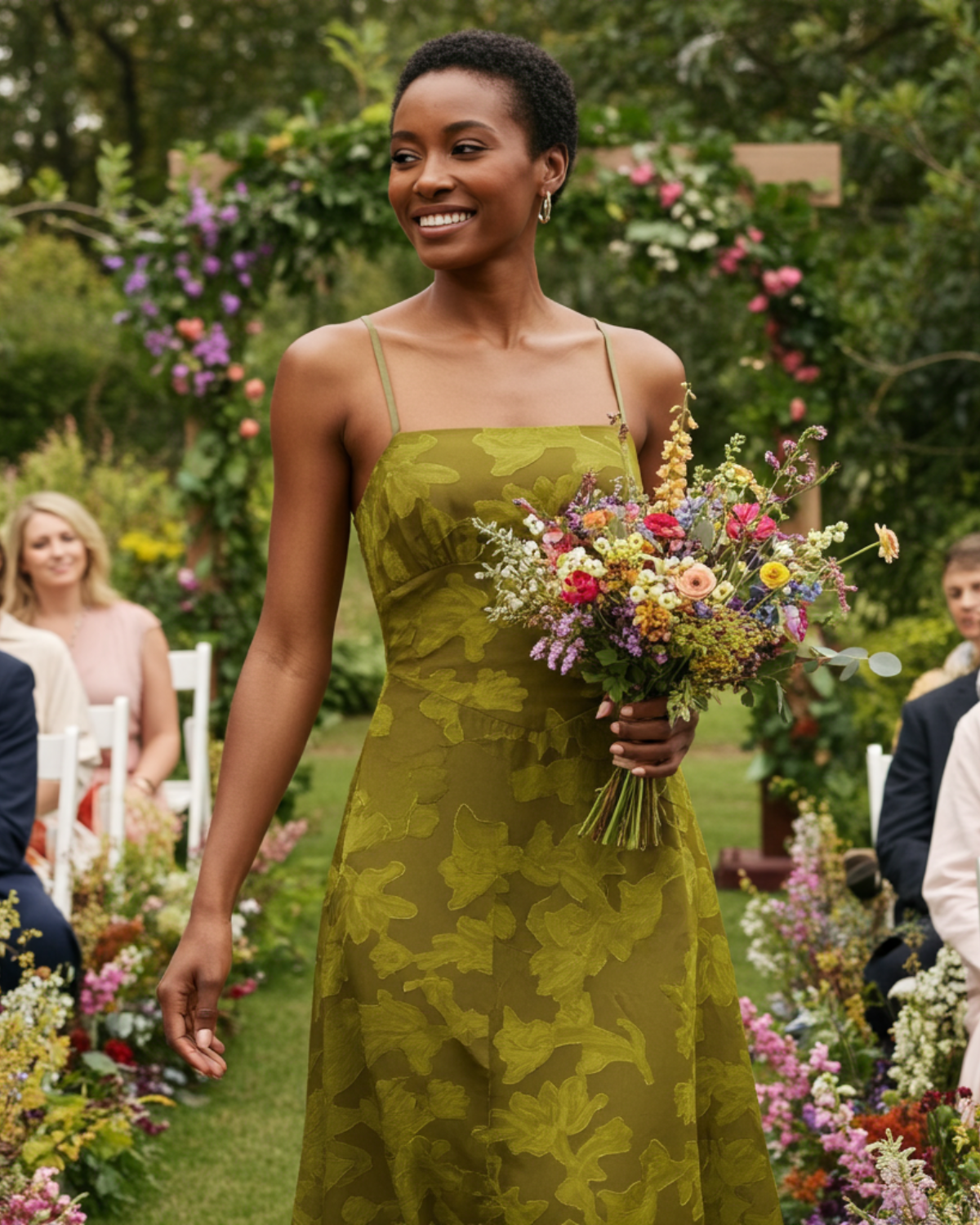 Dressed up with gold heels for dinner, paired with sandals for resorts, or layered with a denim jacket for winery tours. Green floral works from day to night.