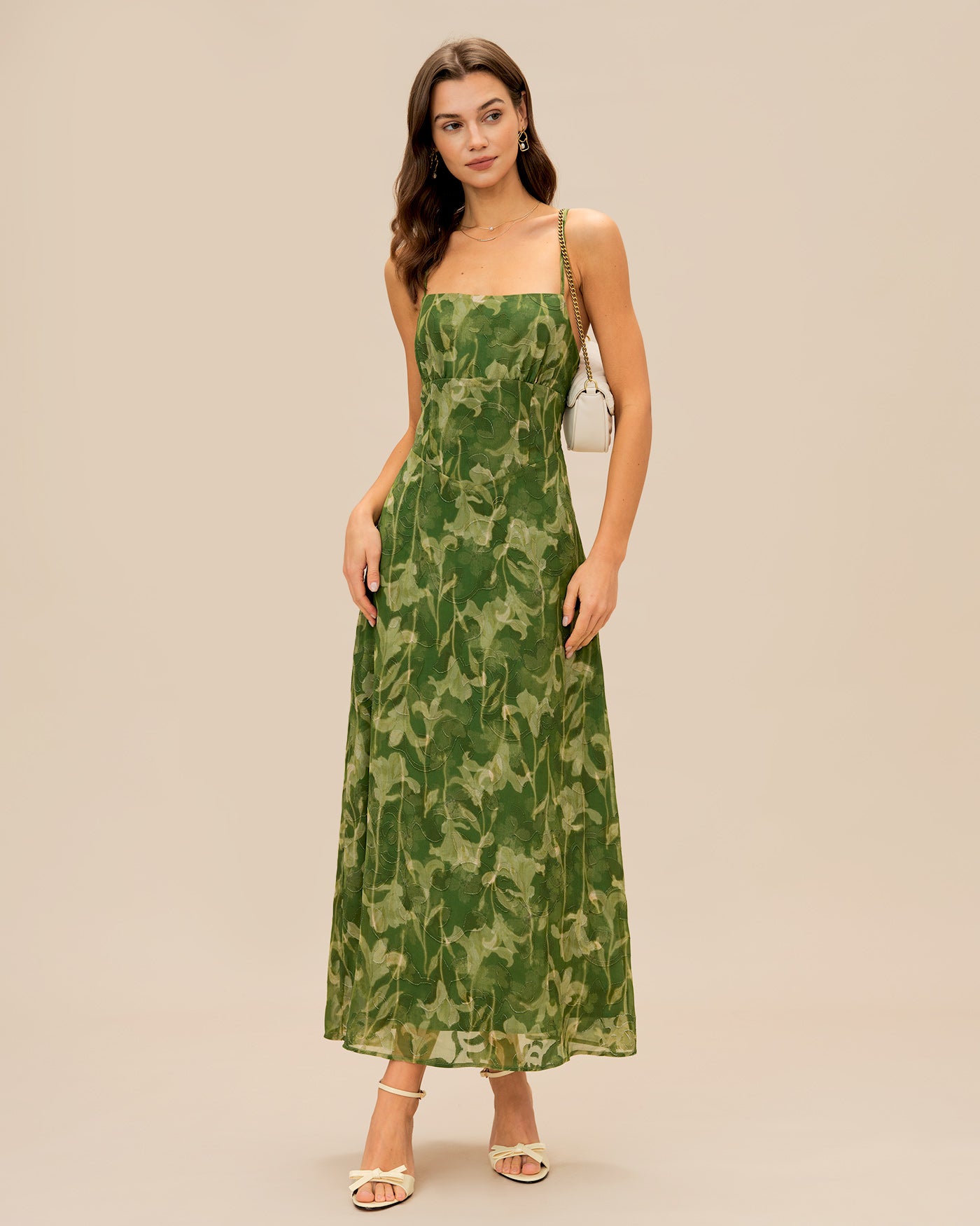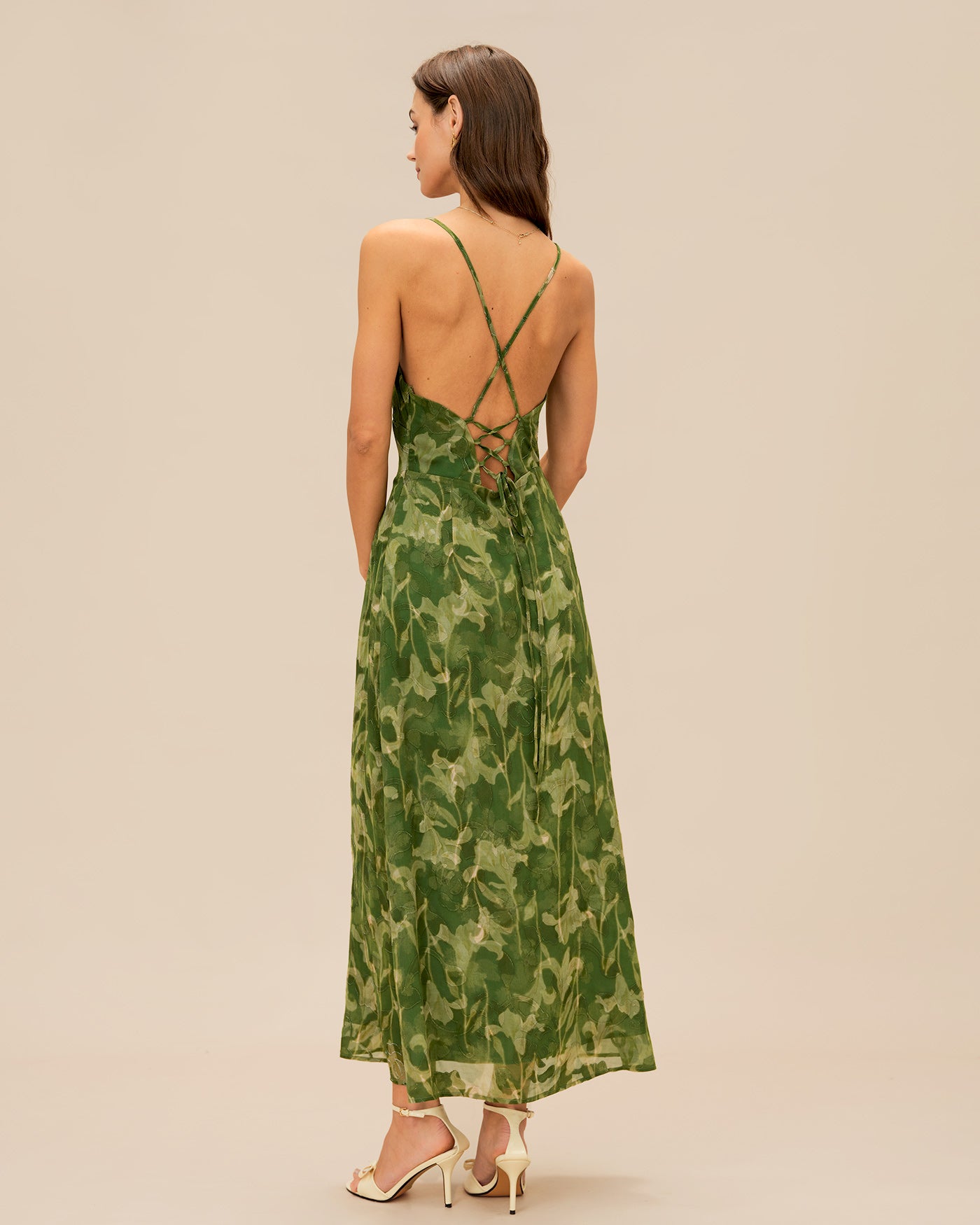 Green Floral X Cross Slip Maxi Dress