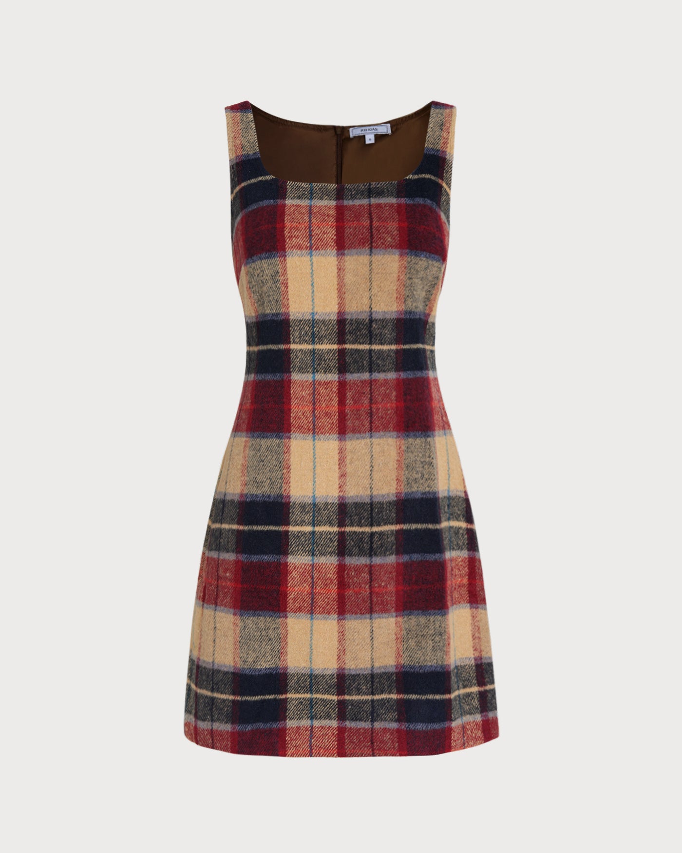 Red U Neck Plaid Mini Dress