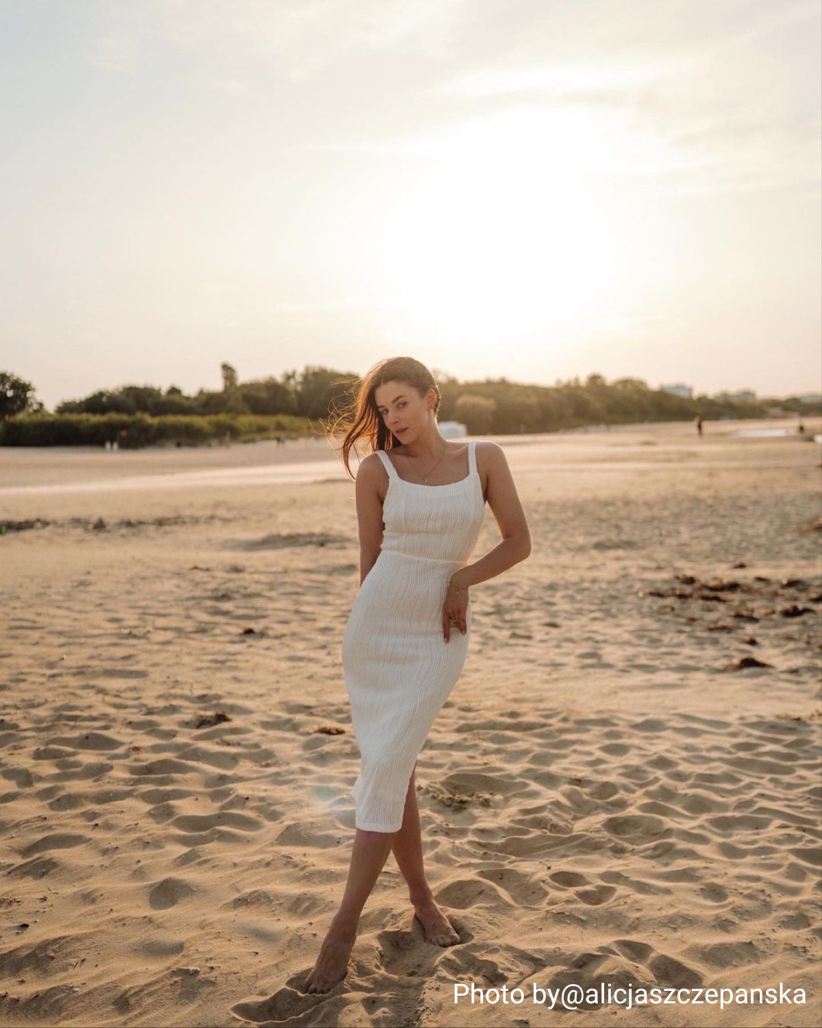 The pearl strap design is for sure the most eye-catching design, novel yet stylish. This midi dress further perfects another two pearl strap dresses by following the pearl strap and wave textured design and adding the side slit design. Compared with other wave textured dresses, its v-neck design better shows females' sexy and grace. Plus, the high-waisted and slim-fit design shape women's body shapes well.