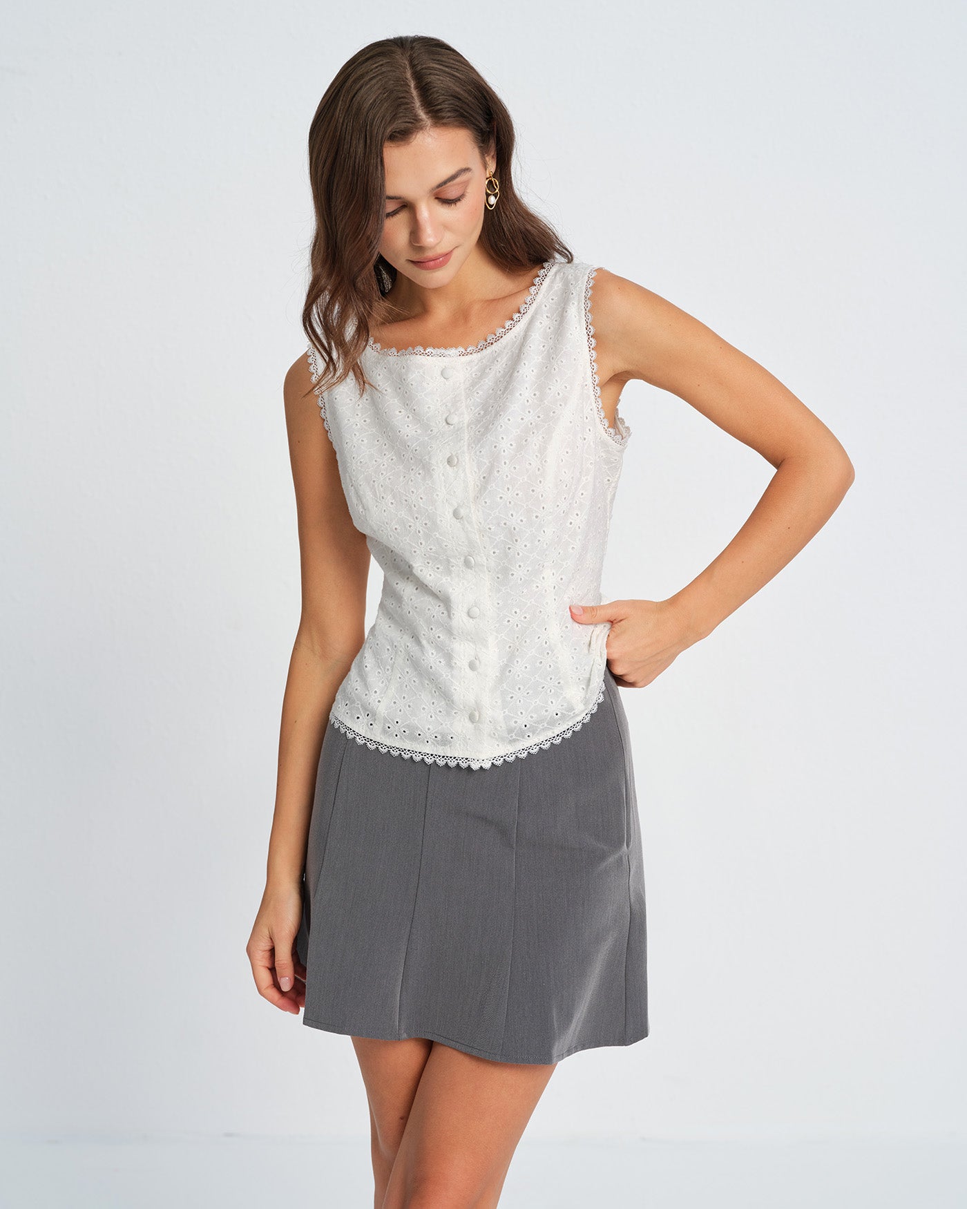 White Single Breasted Lace Vest