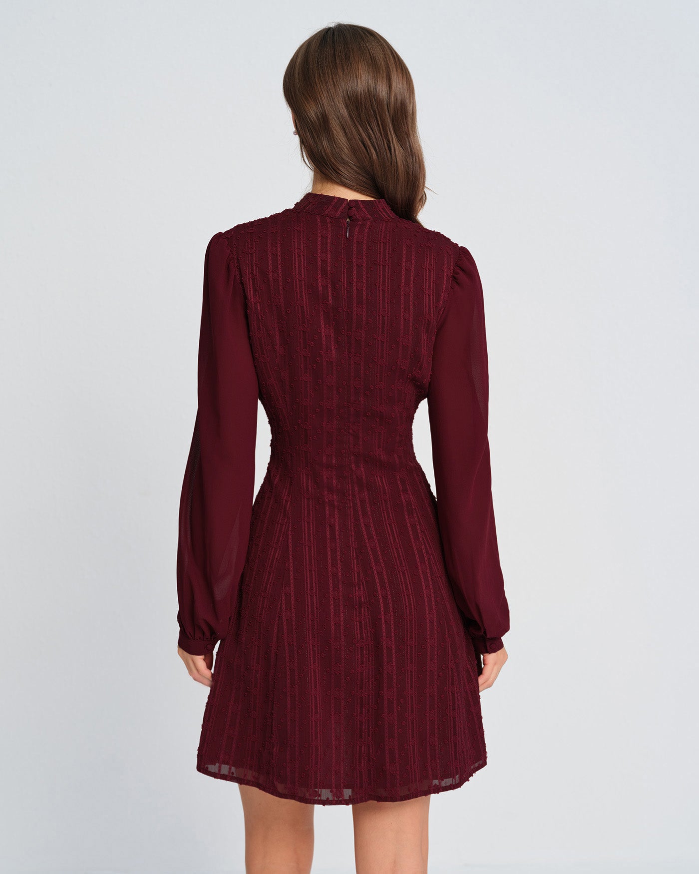 Wine Red Chiffon Mock Neck Mini Dress