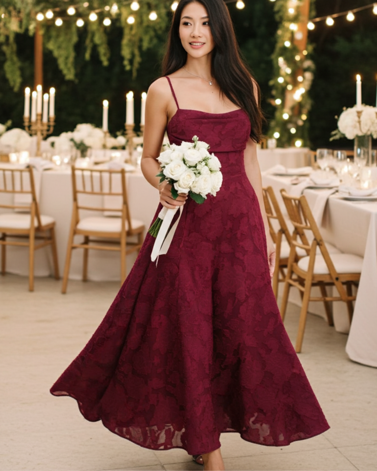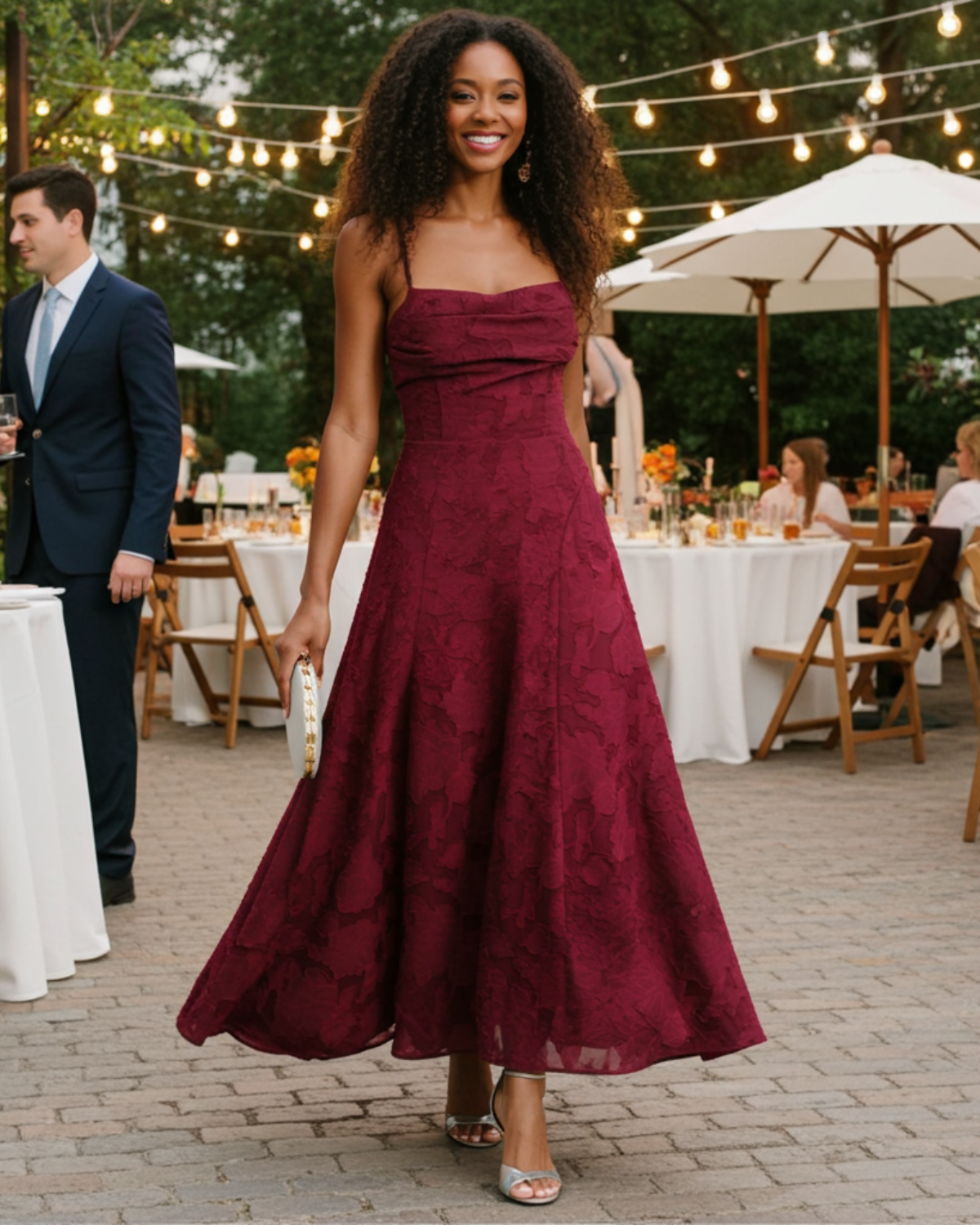 I wore the dress to a October wedding, which was still warm, but I didn't get hot. I felt comfortable in it. And the dress matched well with the flowers at the venue. I really enjoyed wearing it all day.